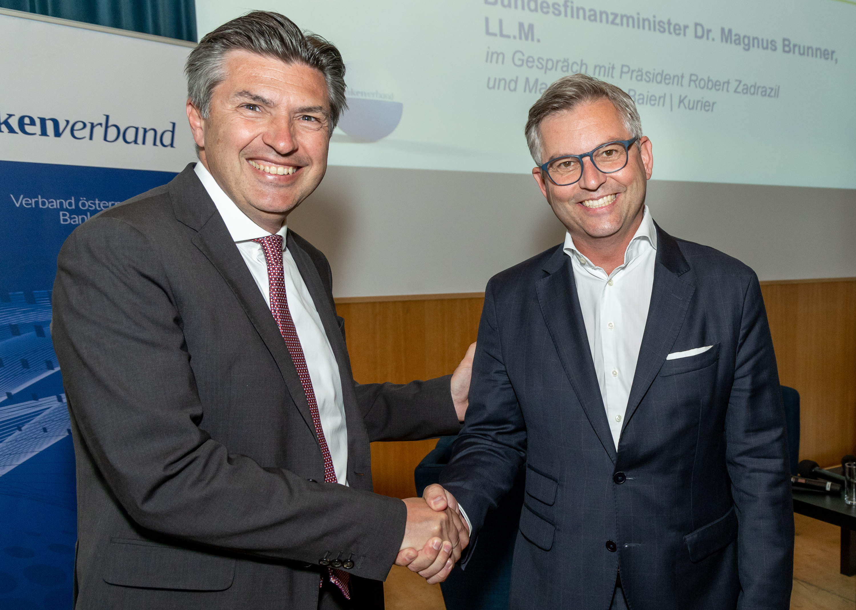 „Bei der Inflation ist Besserung in Sicht“, betonte Finanzminister Magnus Brunner bei seinem Statement in der Diskussion mit Kurier-Ressortleisterin Sandra Baierl bei der Bankenverbands-Generalversammlung. Am darauffolgenden Tag wurde bekannt, dass mit dem Rückgang der Inflation in Höhe von knapp einem Prozentpunkt auf 8,8 % der niedrigste Wert seit fast einem Jahr erreicht wurde. Zu den Gründen der noch immer hohen Inflation zählen der Warenkorb mit dem Fokus auf Gastronomie und Tourismus und die hohen Lohnabschlüsse. „Wir haben mit Belgien die höchsten Lohnabschlüsse in Europa. Jeder Prozentpunkt höherer Lohnabschluss bedeutet 0,3 Prozent höhere Inflation.“ Zum Thema „grüne Transformation“ sagte der Finanzminister: „Der Staat kann die Transformation nicht allein finanzieren. Wir müssen auch privates Kapital mobilisieren“ und kündigt eine Neuauflage der Green Bonds an. „Green Bonds wurden vom Markt gut angenommen und siebenfach überzeichnet“, so Brunner. Auf die Frage der Bedeutung des digitalen Euro antwortet Brunner, dass dies für den Interbankenbereich relevant sein werde und nur „ergänzend“ sein kann. Sonst sieht er die Entwicklung „zurückhaltend und skeptisch“ und betont, dass es noch keine politischen Gespräche auf europäischer Ebene dazu gab.